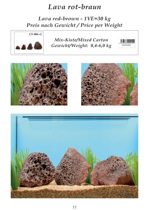Lava rot-braun Lava red-brown - 1 VE=30 kg Preis nach Gewicht/ Price per Weight CS 006-G Mix-Kiste/Mixed Carton 111111111111111111111111111111 4 036466 000151 Gewicht/Weight: 0,4-6,0 kg Lava rot-braun 11