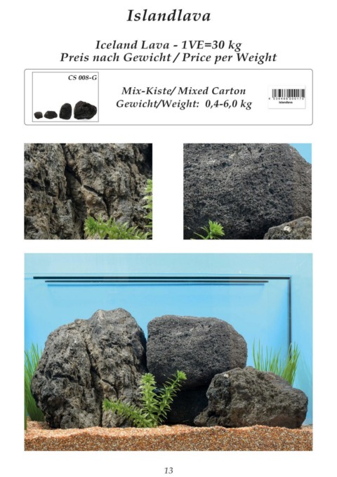 Islandlava Iceland Lava - 1 VE=30 kg Preis nach Gewicht/ Price per Weight CS 008-G Mix-Kiste/ Mixed Carton 111111111111111111111111111111 •49• Gewicht/Weight: 0,4-6,0 kg 4 036466 000175 lslandlava 13