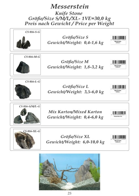 Gewicht/Weight: 0,4-6,0 kg Messerstein Mix