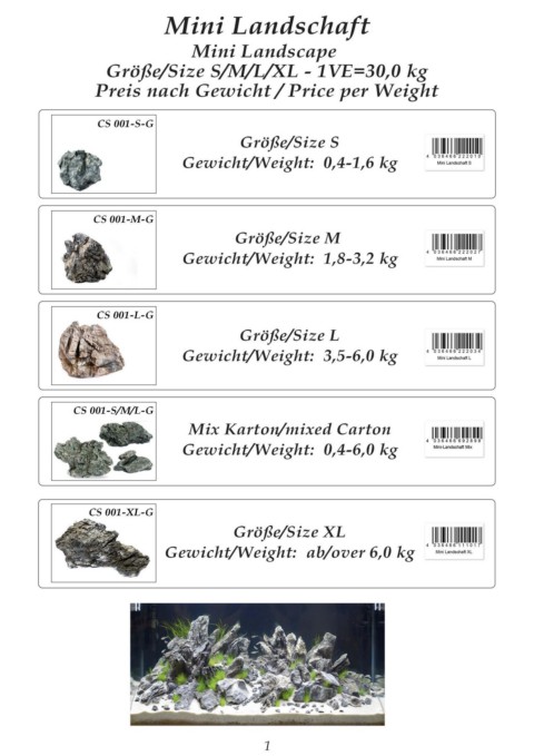 Gewicht/Weight: 0,4-1,6 kg Mini Landschaft S