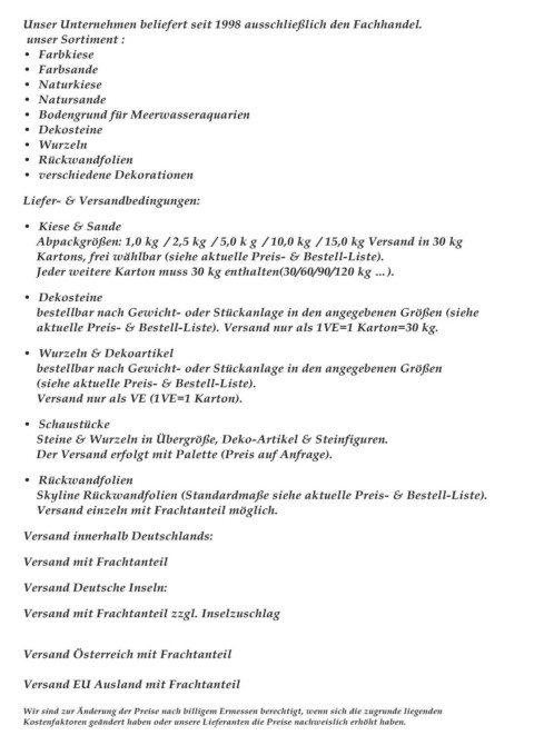 aktuelle Preis- & Bestell-Liste). Versand nur als 1VE=1 Karton=30 kg.