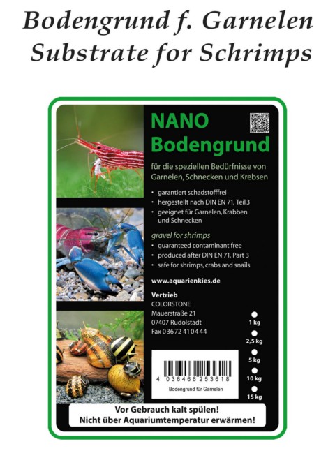 Bodengrund f. Garnelen Substrate for Schrimps 111111111111111111111111111111 4 036466253618 Bodengrund für Garnelen Vor Gebrauch kalt spülen! Nicht über Aquariumtemperatur erwärmen!